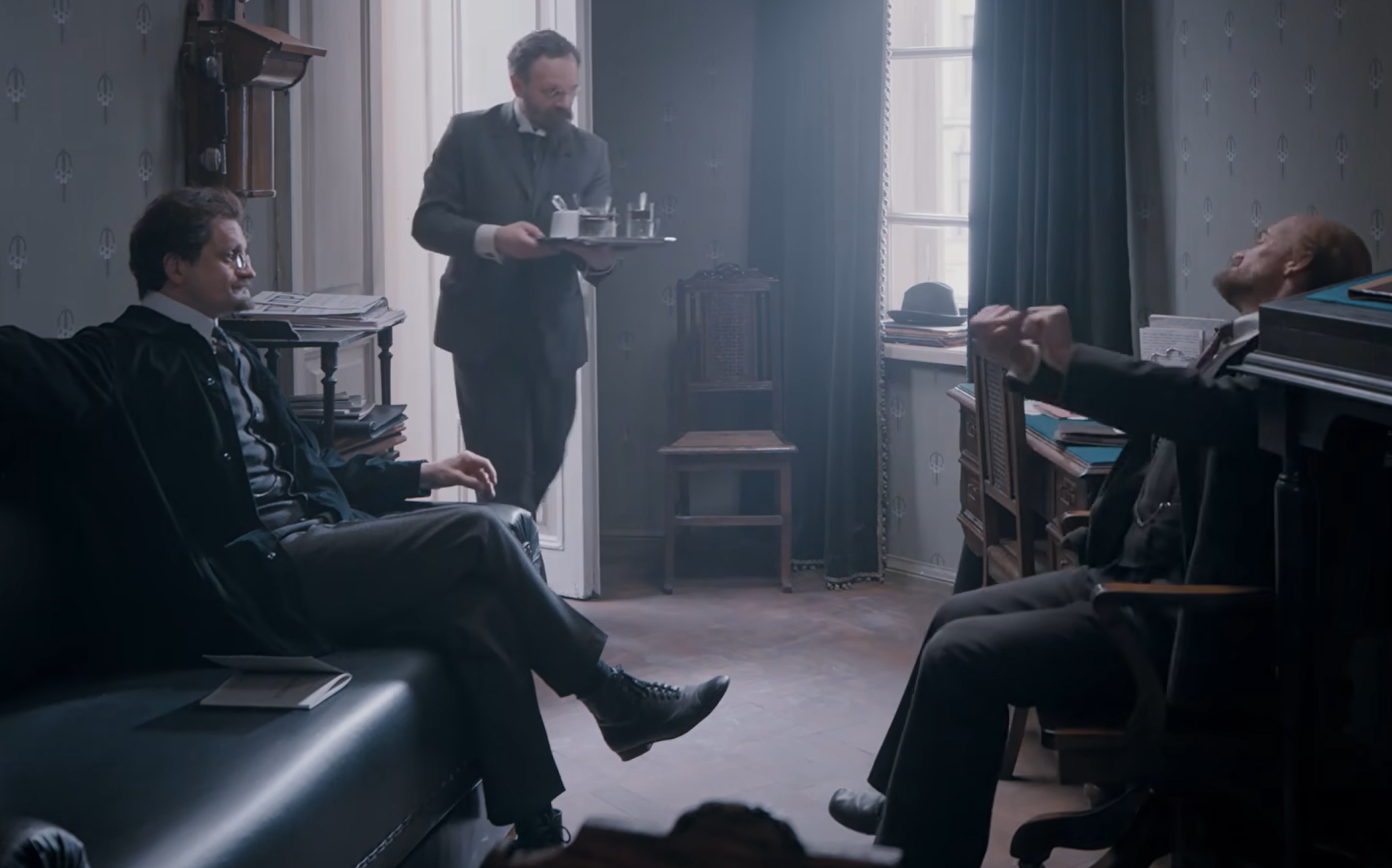 Писатель Максим Горький (Евгений Смирнов-Иваницкий) и его гражданская жена Мария Андреева (Мария Шумакова) принимают гостей – коммерсанта Александра Парвуса (Алексей Колубков) и священника Георгия Гапона (Илья Крутояров), который, благодаря манифесту императора, вернулся на Родину.