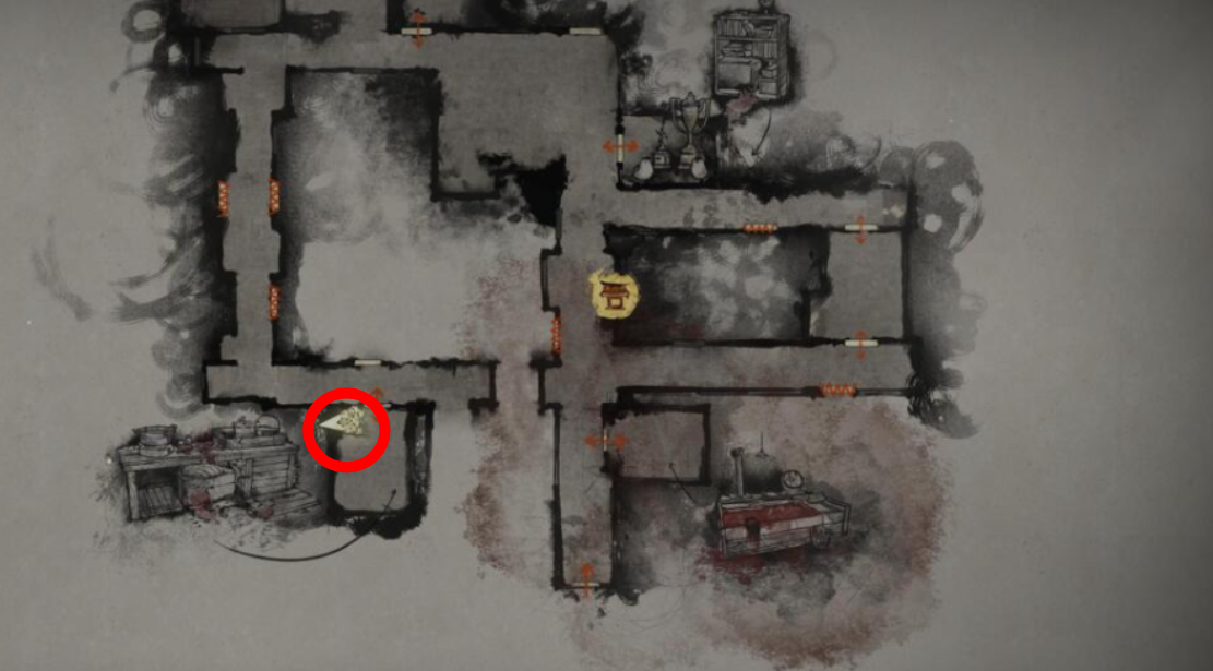После того как вы разместите второй, пожелтевший календарь (к этому моменту у вас уже должен быть один герб, полученный из головоломки с весами), отправляйтесь в юго-западную часть здания. В этом варианте дома, обозначенном на карте как «Резиденция Симидзу III», находится кухня, расположенная рядом с комнатой, где обитает большое чудовище. На столе справа от входа лежит синий фуросики – предмет, увеличивающий вместимость инвентаря.