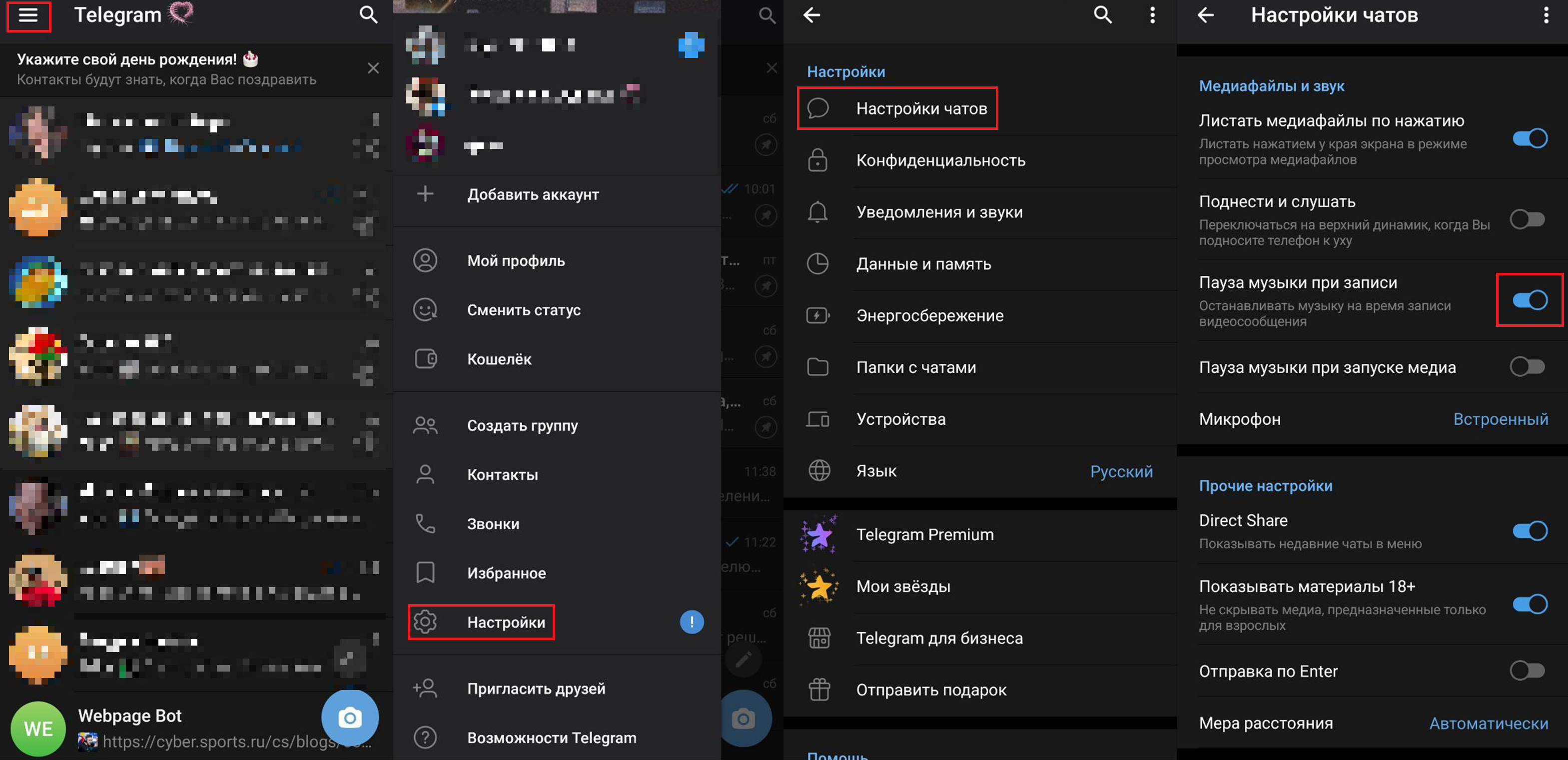 Кружки в ТГ – быстрый и удобный способ показать то, что вы видите прямо сейчас. Но что, если вы хотите добавить им фоновой музыки? Многие сталкиваются с тем, что при начале записи играющая песня прерывается. К счастью, в мессенджере есть простая настройка, которая решает эту проблему.