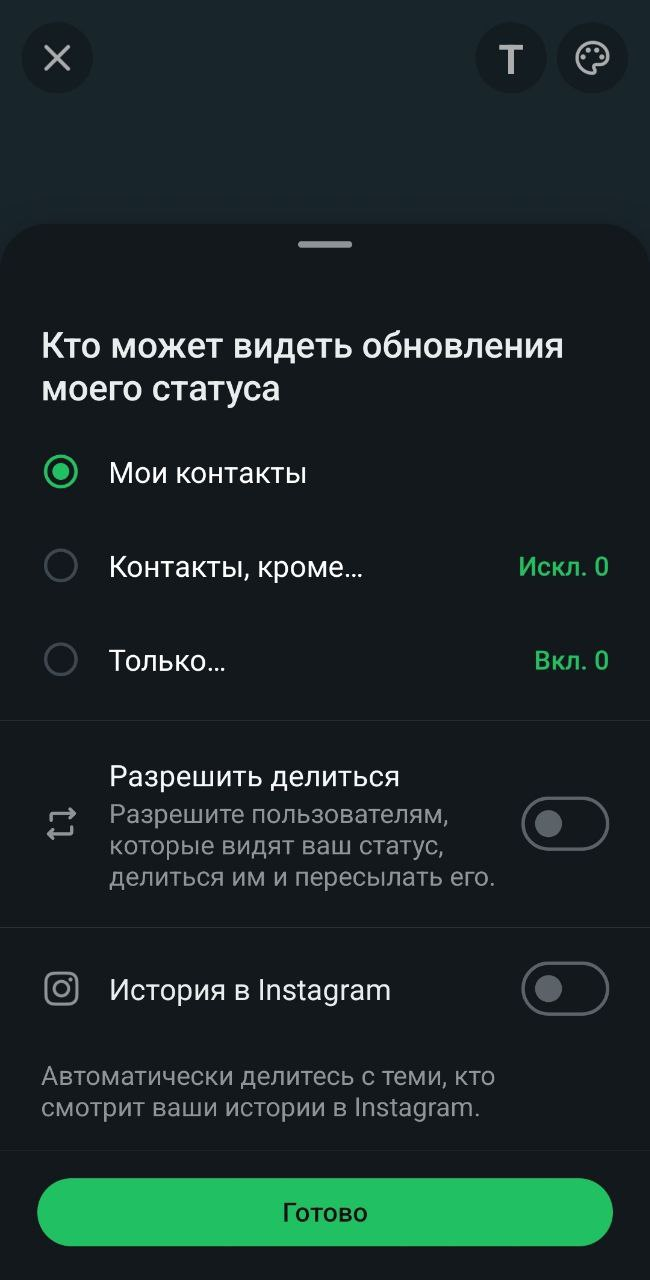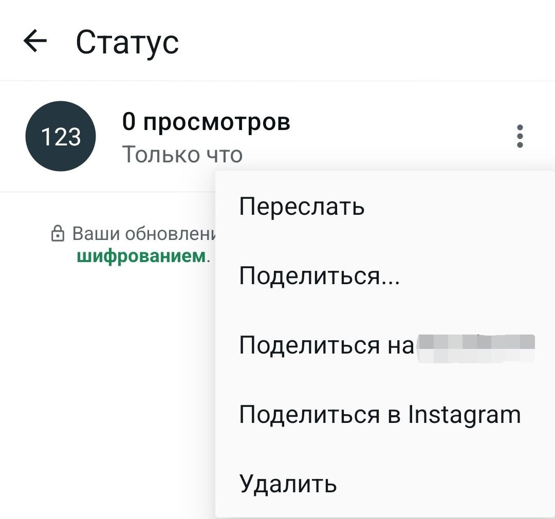- Статусом можно поделиться в другие чаты WhatsApp, мессенджеры и соцсети.