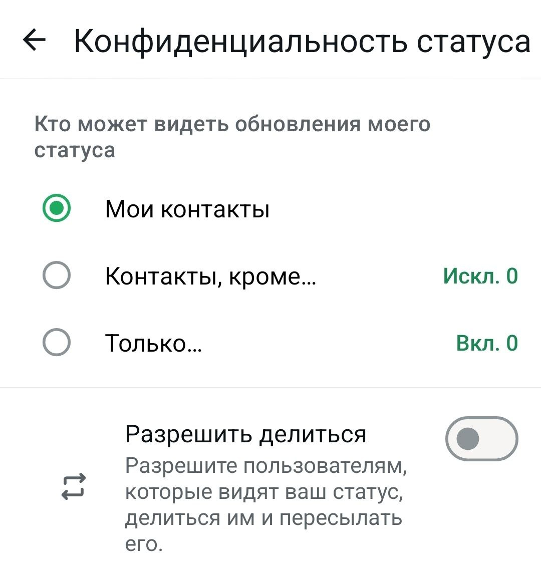 - По умолчанию статусы видны всем людям, которые есть в ваших контактах, и тем, у кого есть ваш номер. Но настройки приватности можно поменять.