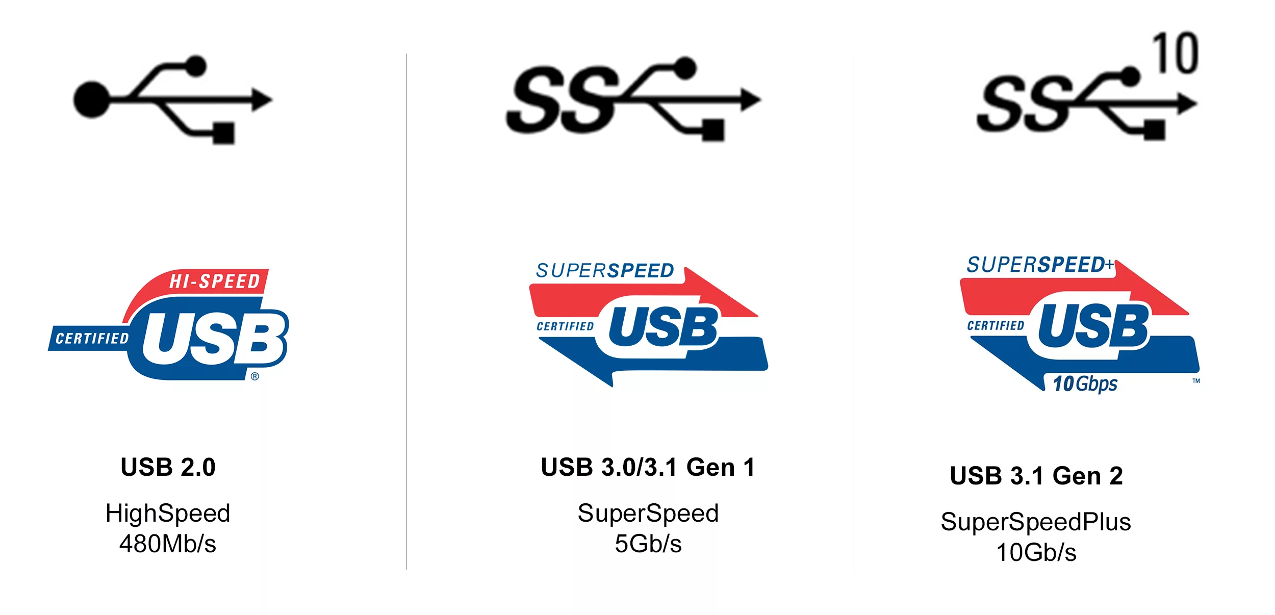 - Изначальный USB 3.0 был переименован в USB 3.1 Gen 1 с маркировкой SuperSpeed.