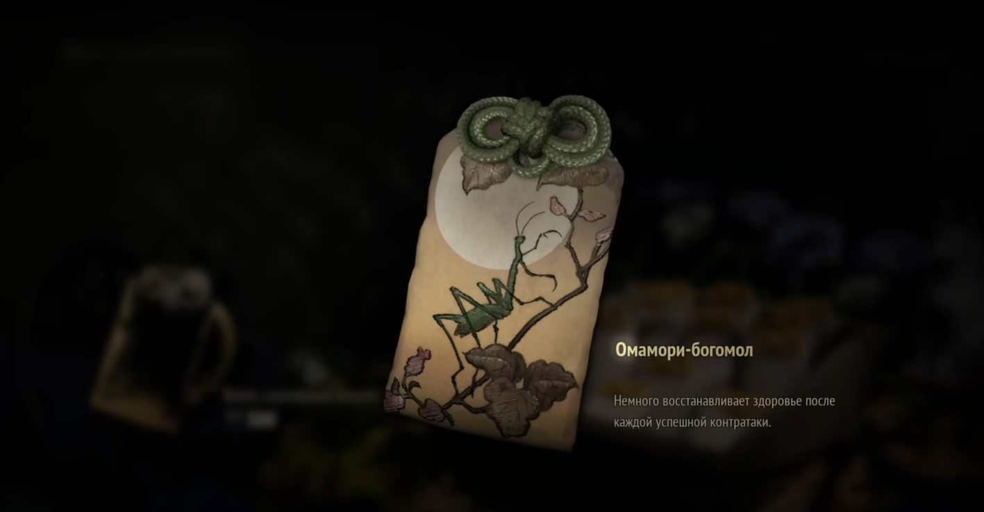 Применение: прекрасно сочетается с омамори–ворон или богомол. Повышенное восстановление здоровья снижает расход лечебных предметов, что особенно полезно на высоких уровнях сложности. Однако эффективность этого талисмана проявляется зависит от наличия расходников.