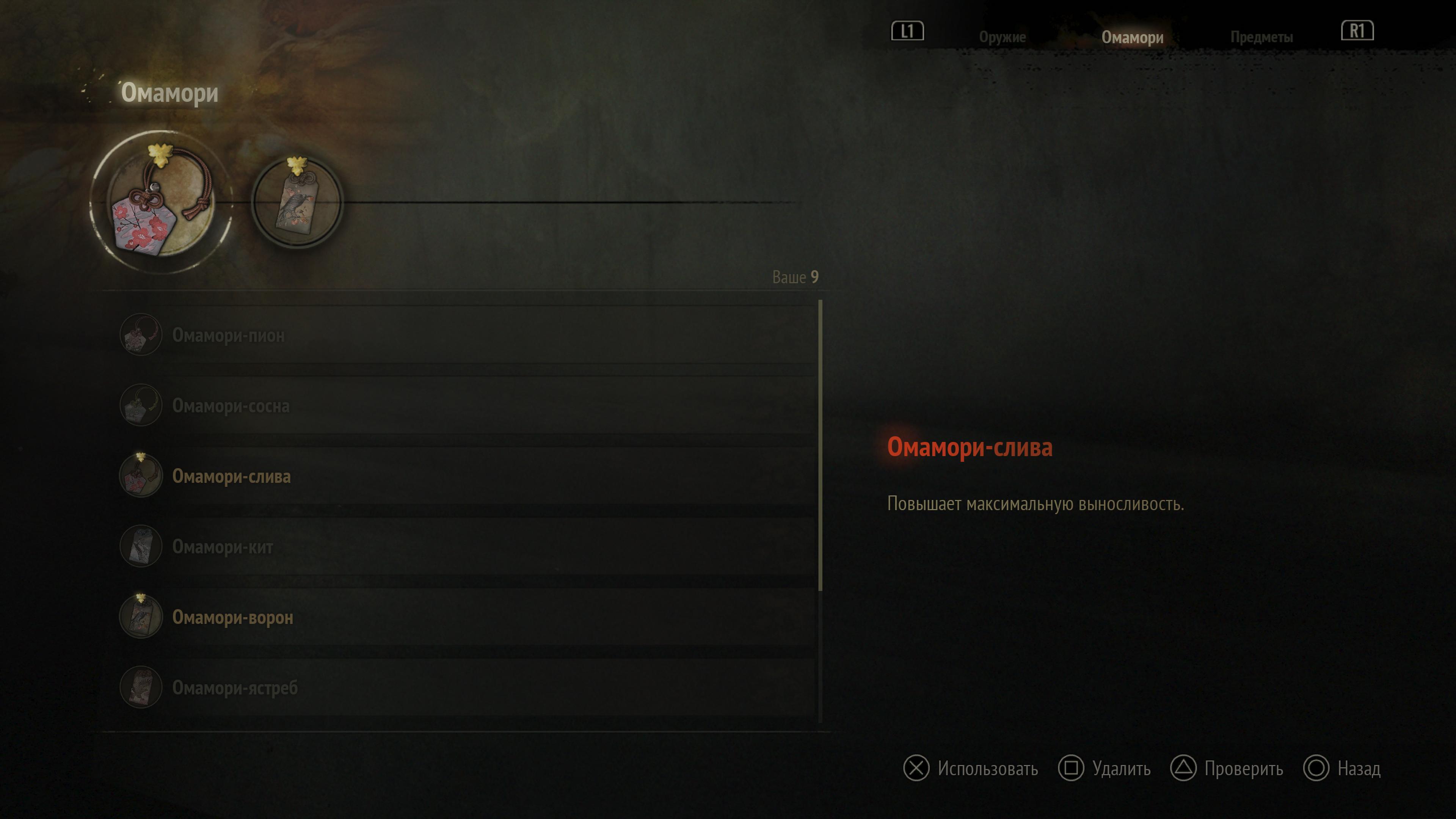Применение: чрезвычайно мощный, но одноразовый омамори. Спасает жизнь, но после активации исчезает из инвентаря.