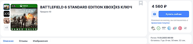 - совершить покупку Battlefield 6 в официальном магазине Xbox.