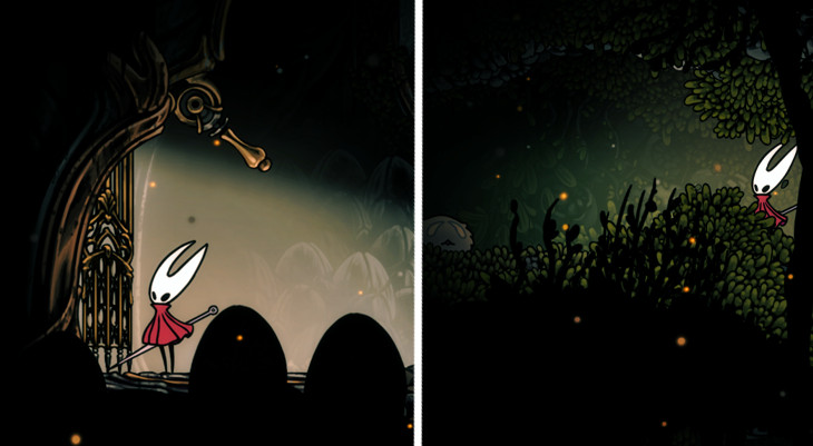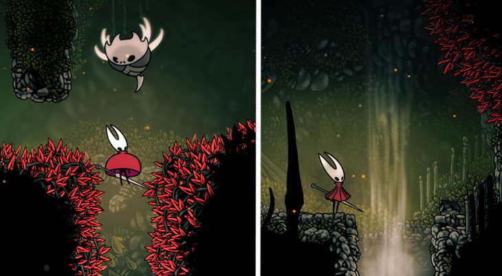 На первых участках встречаются муравьи с листьями и новые враги со щитами. Идите направо к восходящим потокам ветра. Пока вы не получили навык парения, они бесполезны, но пригодятся позже.