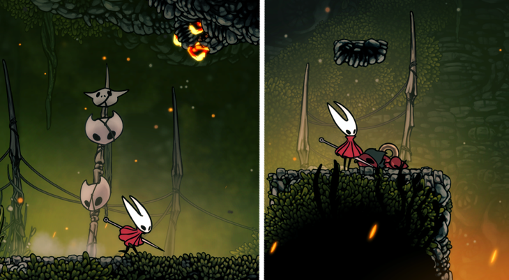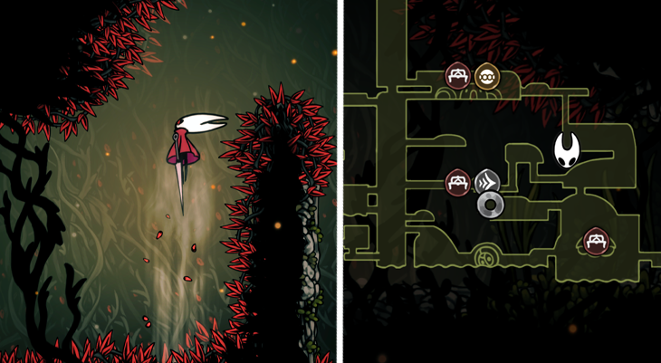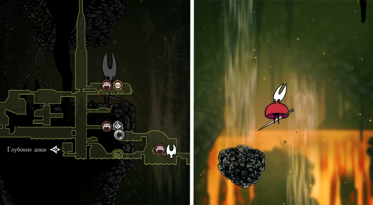 Без Плаща Бродяги вы застрянете на локации, потому что все пути наружу завязаны на восходящие потоки воздуха. Прыжок не достает, обходных маршрутов нет. Единственный способ выбраться – получить навык у Швеи, сразить Четвертого Хора и уже потом улететь по потокам.