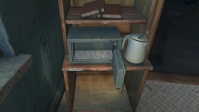 Когда вернетесь обратно, внимательно осмотрите помещение. На столе можно найти несколько карандашей, на полках — книги, а телевизор стоит у стены или на тумбе. Считайте предметы в том порядке, в котором они упомянуты в записке: сначала карандаши, потом книги и в конце телевизор. Обычно получается семь карандашей, шесть книг и один телевизор, что дает комбинацию 7-6-1. Введите этот код в сейф, и он откроется. Внутри вы найдете два легендарных предмета — один лечебный и один, который можно выгодно продать торговцу. Хотя задание не отмечается в журнале и не приносит опыта, награда определенно стоит затраченного времени. К тому же подобные мини-загадки прекрасно передают атмосферу игры и показывают, насколько детально разработчики продумали окружение.