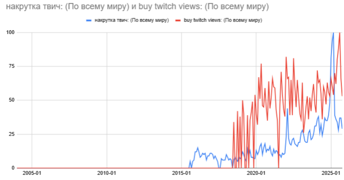 Накрутка зрителей на Твиче – явление давнее. За последние годы рынок накрутки растет за счет популярности и количества разных сервисов. Как в США, так и в России. Достаточно посмотреть на количество запросов в Google Trends.