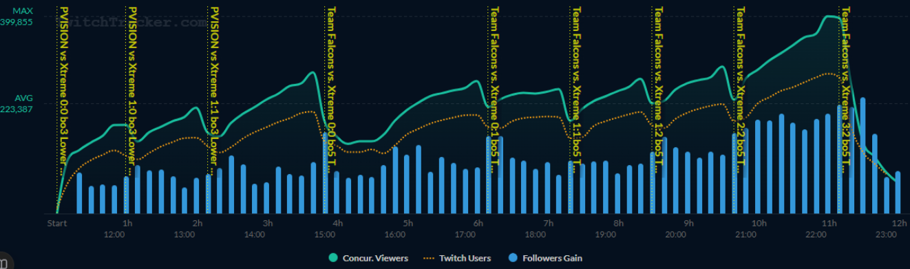 Матчи в Доте отличаются динамикой, и конец каждой карты или серии можно отследить через пики на графике онлайна. И у Никса здесь все естественно.