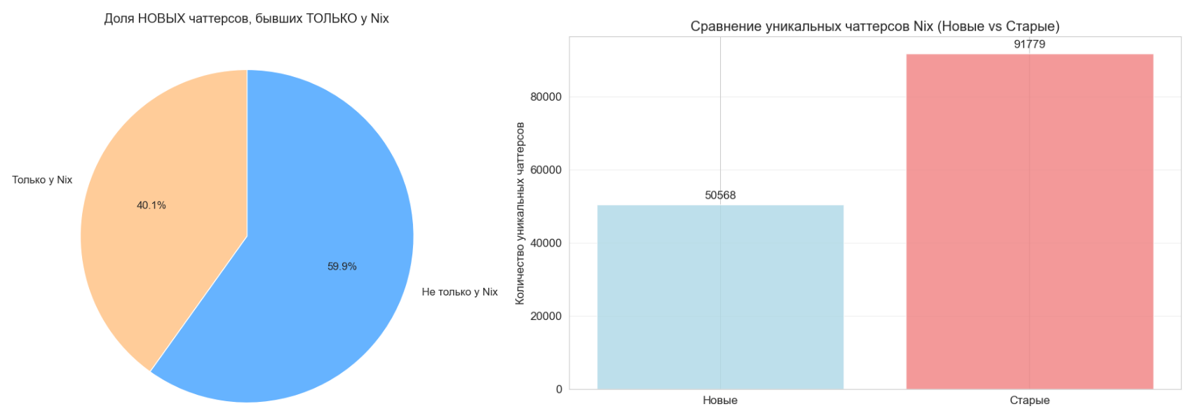 Если предположить, что Никс действительно накручивает, то, вероятно, у него будет либо уникальная аудитория, которая никогда ранее никуда не заходила, либо заходила на аналогичные подозрительные каналы. Внимание на следующий показатель: