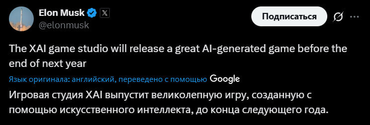 В феврале Илон Маск и официальный аккаунт xAI объявили о поиске разработчиков, интересующихся созданием ИИ-игр. В октябре об этом снова вспомнили, когда Маск заявил, что xAI выпустит «великолепную» сгенерированную игру к концу следующего года. Сейчас его команда в поиске людей, которые натренируют Grok на создание «увлекательных, веселых, инновационных видеоигр». До этого он писал, что выпустит более-менее «смотрибельный» фильм к концу 2026 года, и к 2027 году уже будут «действительно хорошие фильмы».