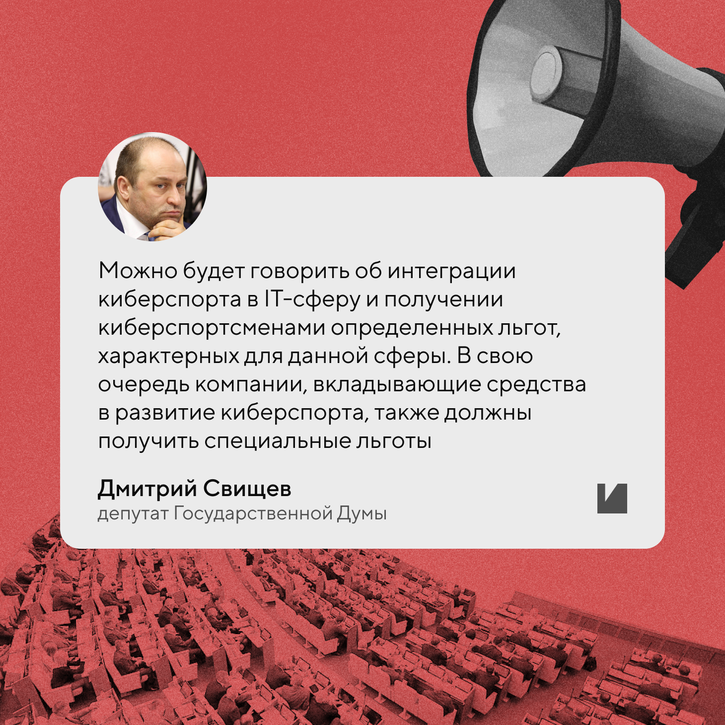 Кроме отсрочек и отдельных рот, предлагались и другие привилегии для киберспортсменов. На фоне отъезда IT-специалистов государство сохраняло кадры льготами. Депутат Дмитрий Свищев призвал приравнять к таким сотрудникам и киберспортсменов.