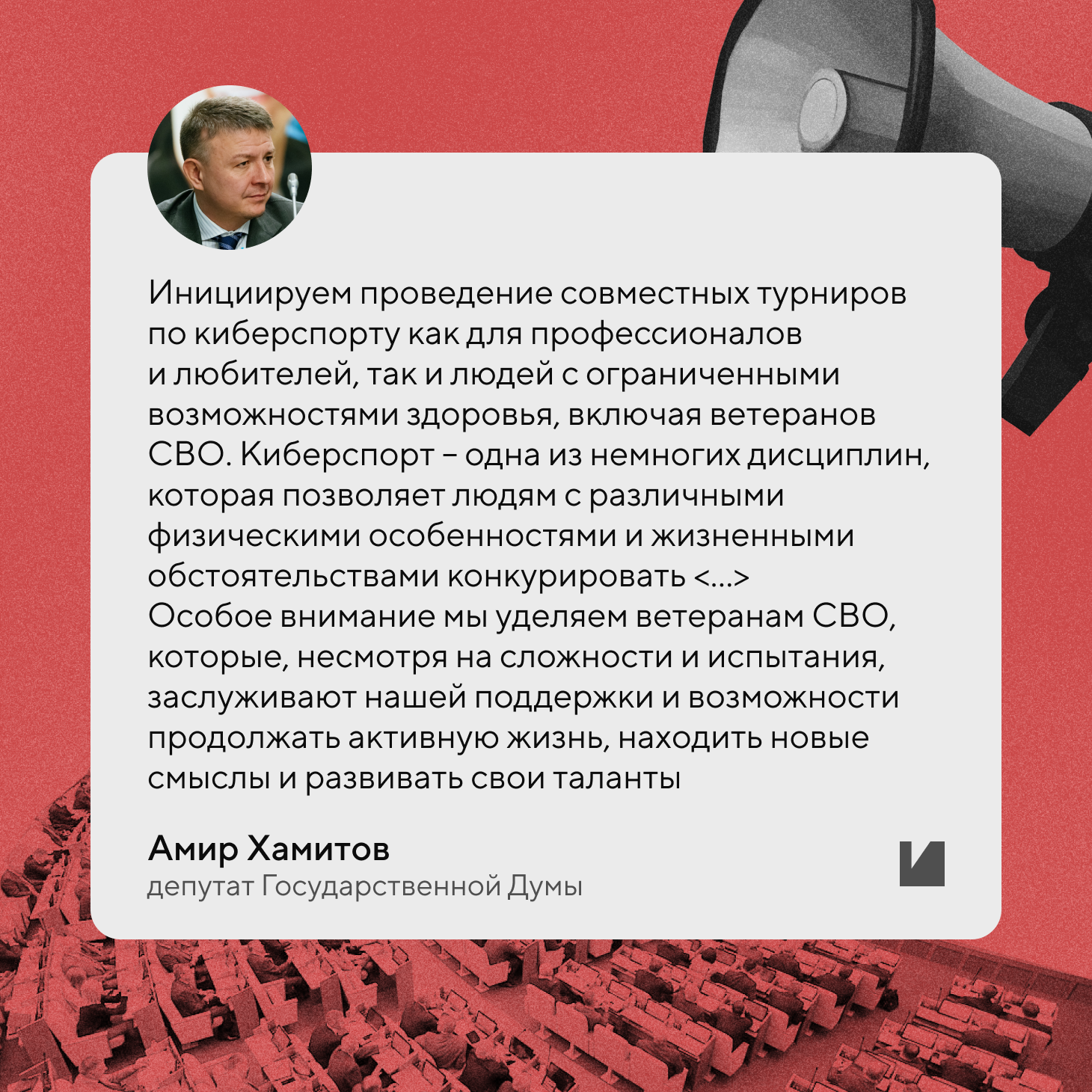 Также в июле 2025-го депутат Хамитов предлагал учредить инклюзивные турниры по киберспорту.