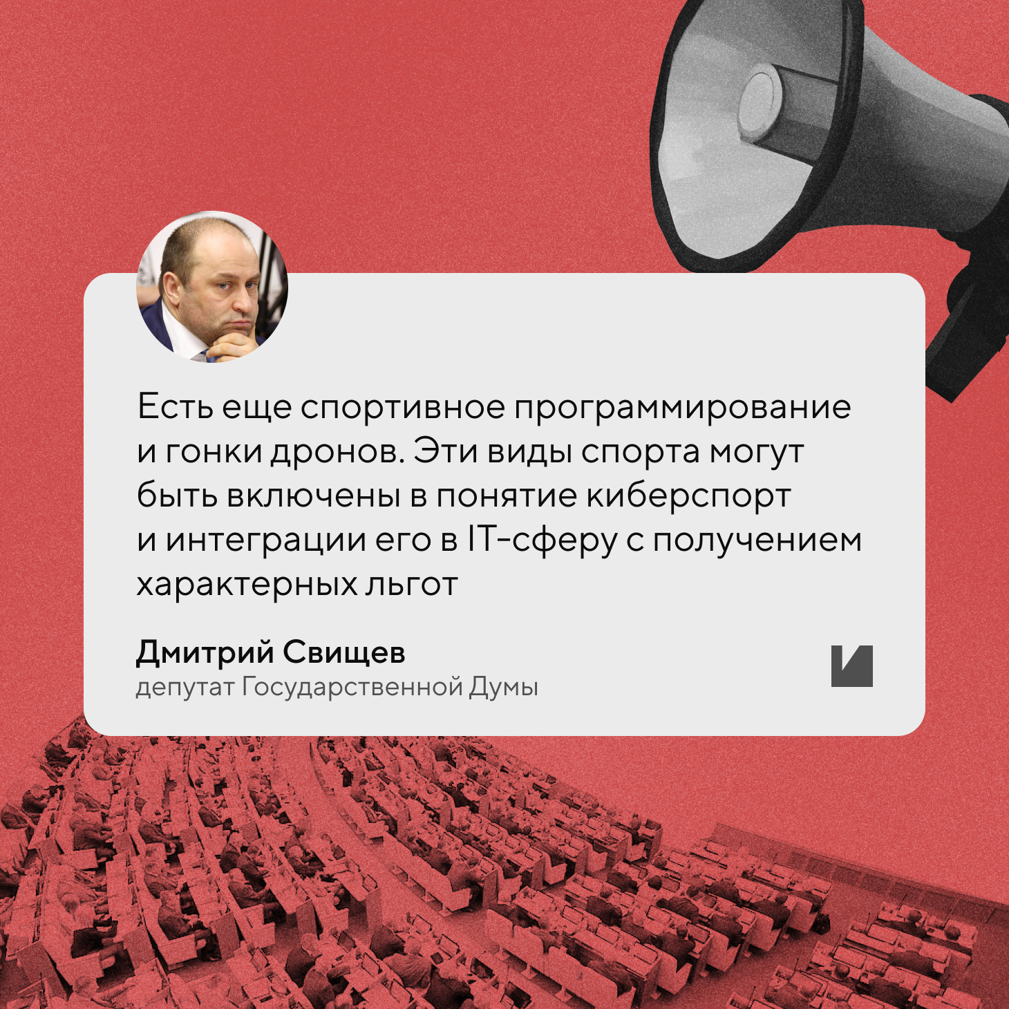 🗣«Такое решение может быть крайне полезно не только для киберспорта, но и для шахмат, шашек и даже для некоторых видов гимнастики», – высказывался депутат Хамитов.