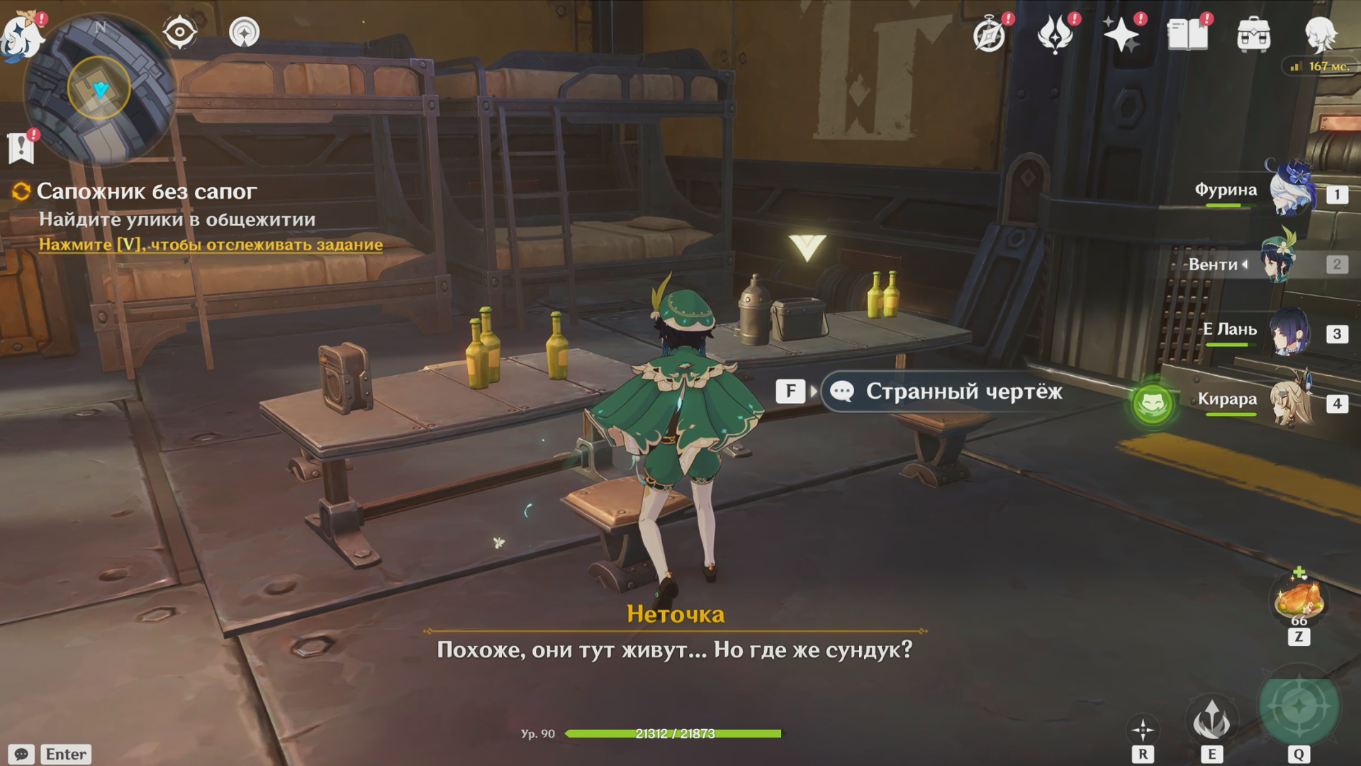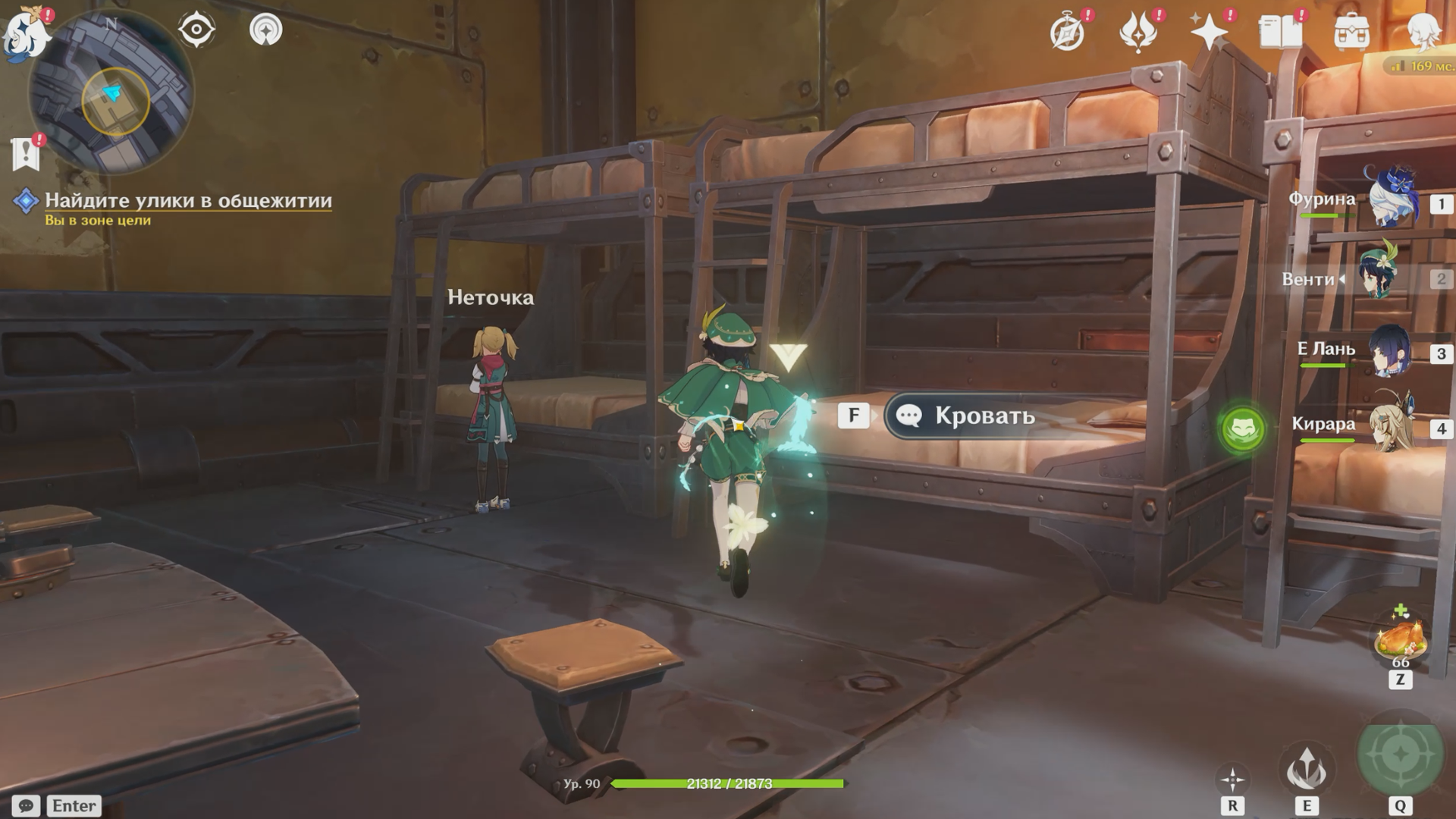 Неточка приведет вас в общежитие. Внутри осмотрите три предмета: чертеж, контейнер и кровать. Спрятаться от охраны можно где угодно, это ни на что не влияет.