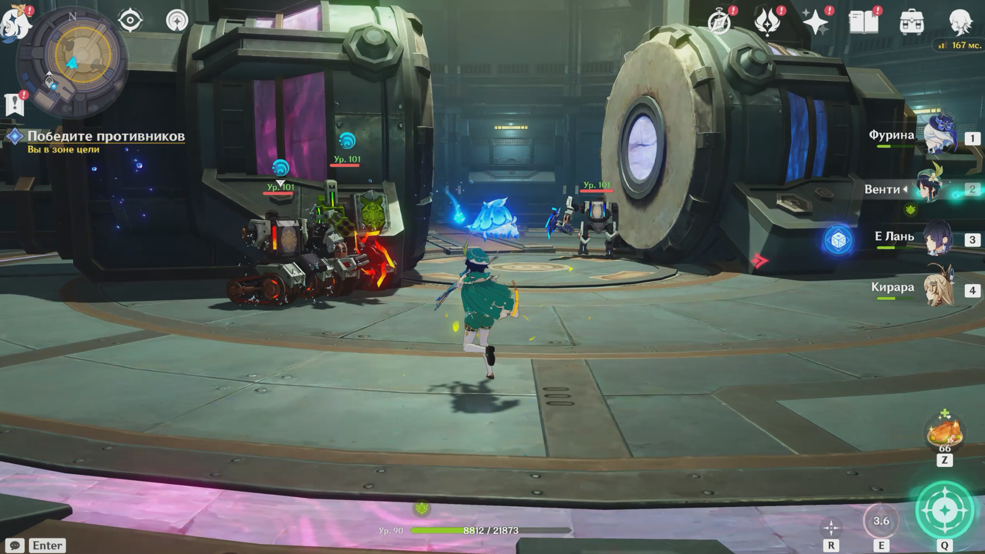 После кат-сцены придется сразиться с группами Фатуи. Если не успеть за двадцать секунд, враги вызовут новых.