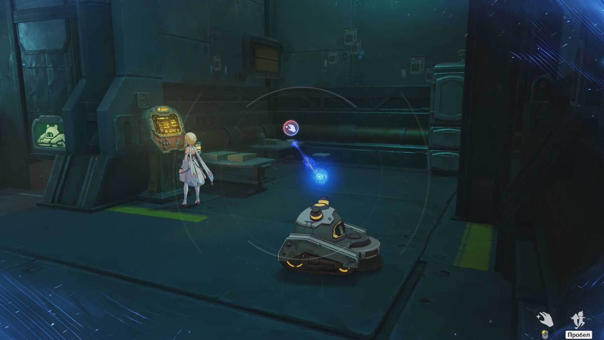 Взаимодействуйте с ними следующим образом: если экран синий – тяните за с красный, если красный – активируйте синий. Повторяйте, пока не разрушите машину.