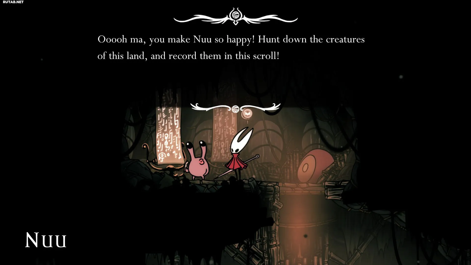 Чтобы получить заполненный журнал охотника и достижение «Истинная охотница», необходимо собрать и расшифровать все записи, а затем вернуться к Нуу. После получения предмета он автоматически добавляет побежденных врагов, но для полного раскрытия комментариев Хорнет нужно убить каждого из них несколько раз. Главное правило – заняться заполнением до начала третьего акта, потому что после сюжетных событий многие существа перестают появляться.