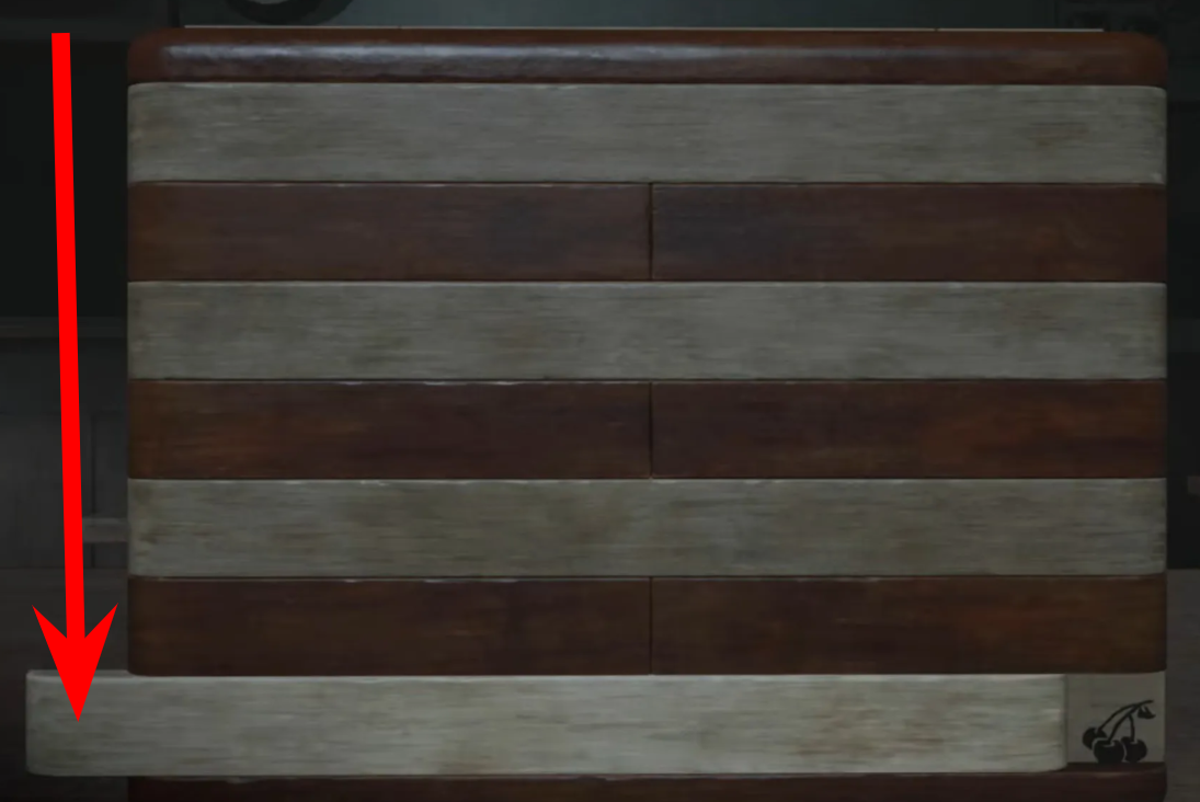 На первой стороне ящичка нужно открыть изображение вишни, для этого нужно подвинуть четвертую дощечку