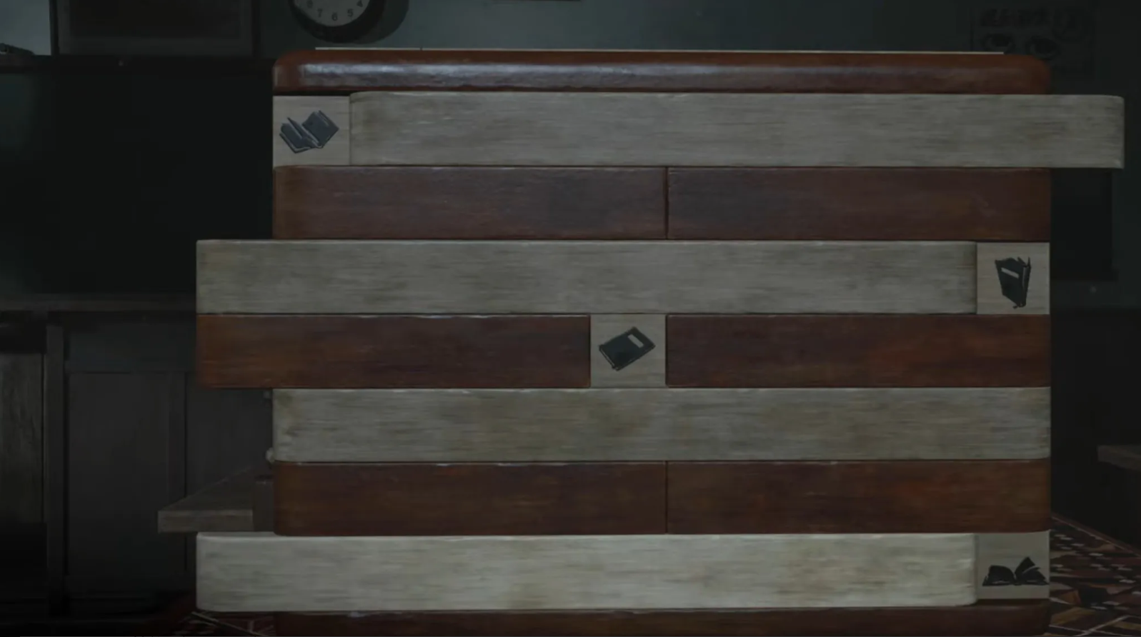 На первой стороне четыре изображения, похожие на дневники. Чтобы их открыть, нужно передвинуть следующие дощечки: