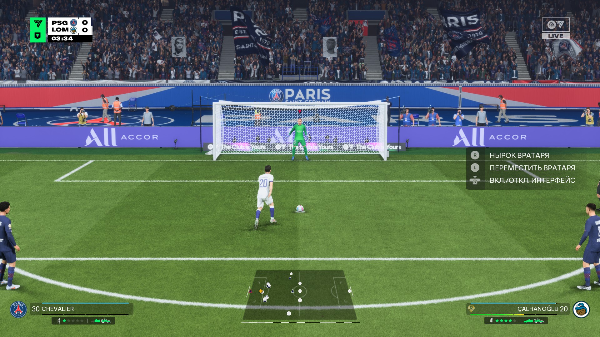Правила пенальти не изменились. Левый стик отвечает за передвижение вратаря на линии, правый – за прыжок. Еще вы можете подшутить над соперником эмоциональными жестами (основные кнопки).