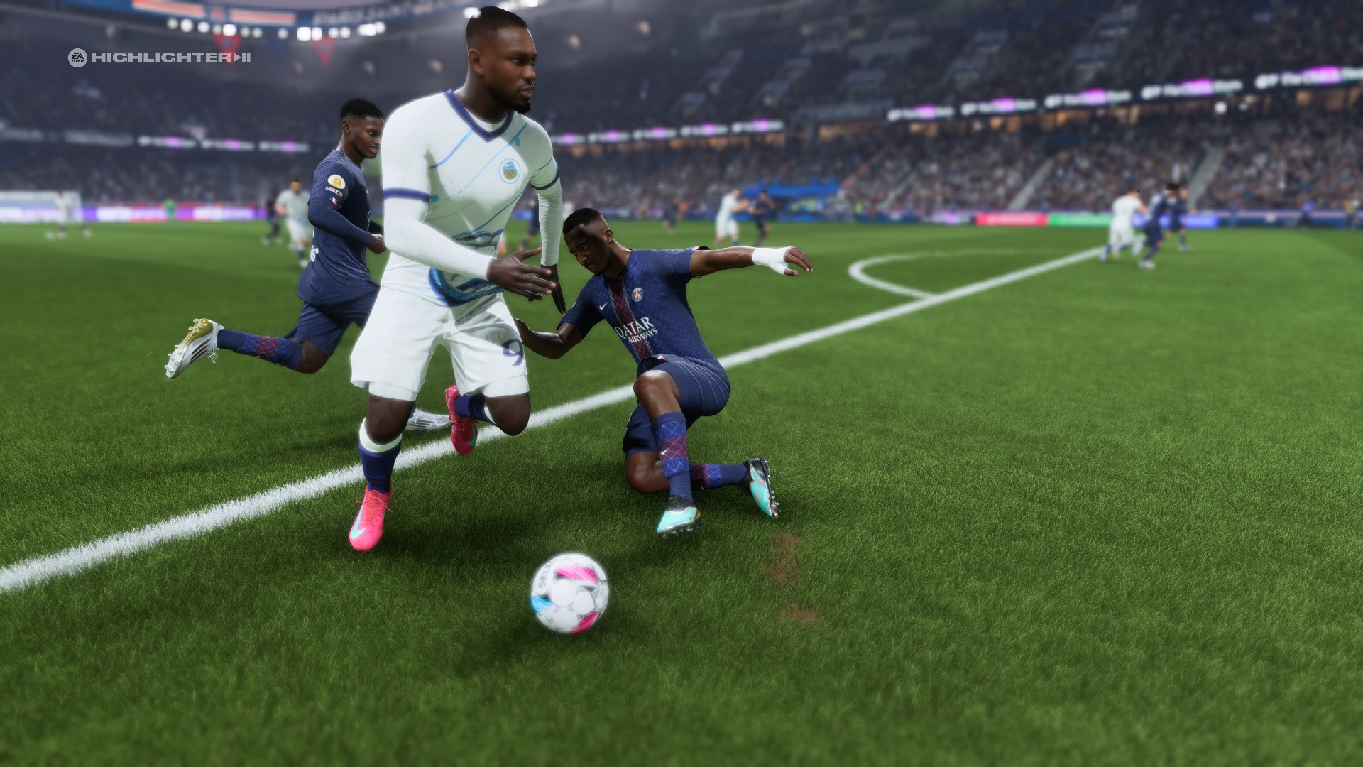 Альтернативное назначение приема – перехват пасов. В соревновательном геймплее футболисты быстро поднимаются после подкатов, но повторное нажатие кнопки X/квадрат ускорит этот процесс.