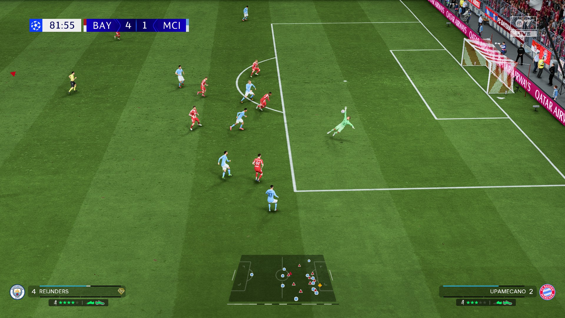 Изучим игру кипера подробнее. Выход вратаря (зажать Y/треугольник) поможет при выходах один на один, но важно оценить дистанцию и не дать нападающему вас перекинуть. Если вы нажмете на кнопку до зажатия дважды, он выскочит из ворот с раскинутыми руками и займет выжидательную полупозицию между атакующим игроком и воротами. Сомнительная идея, но иногда поможет с сэйвами.