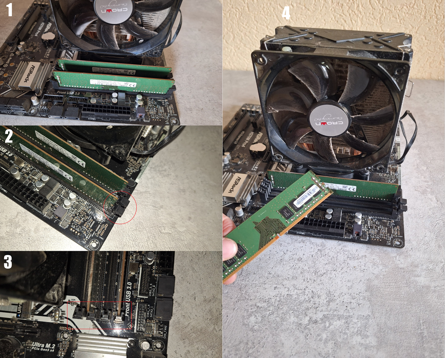 По бокам слотов для оперативной памяти установлены фиксаторы. Они могут быть как с обеих сторон, так и только с одной. Нажмите на них до щелчка и после этого доставайте память.
