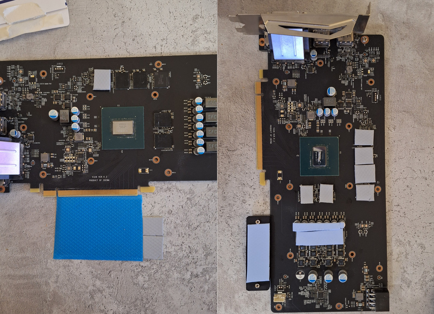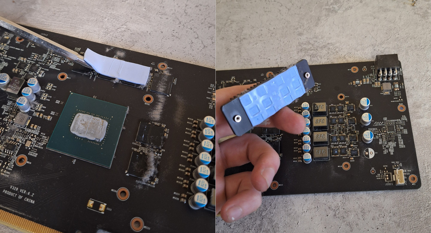 Первым делом загуглите схему расположения и толщину термопрокладок на вашей видеокарте. Например, в моем случае это 1 миллиметр для чипов памяти и 1,5 миллиметра для некоторых силовых элементов. Толщина очень важна – если прокладки будут слишком тонкими или толстыми, то они будут мешать теплоотводу!