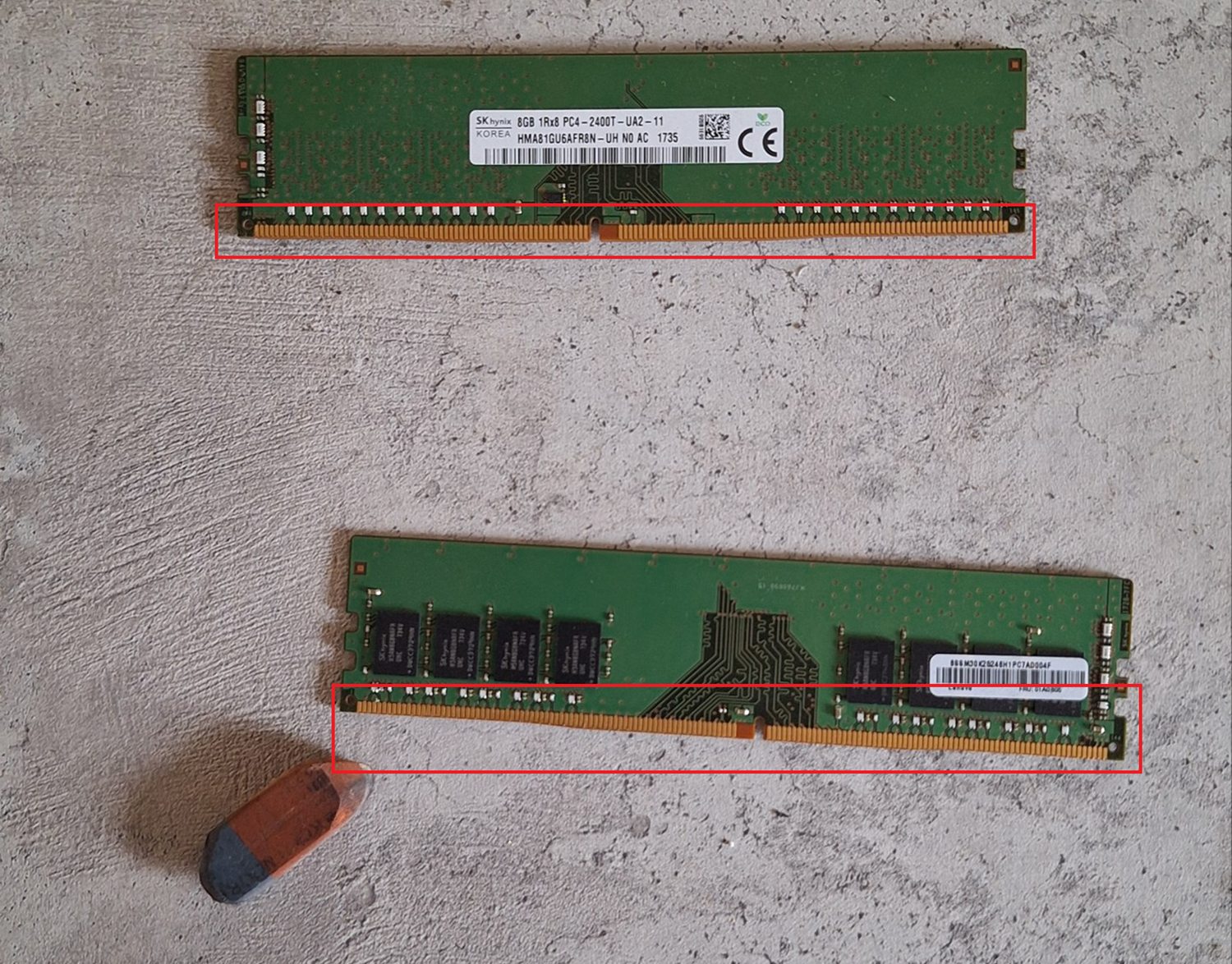 После возьмите обычный ластик и аккуратно протрите контакты (золотистую полоску снизу планок памяти). Это уберет окисления, которые могут образоваться на контактах за годы.