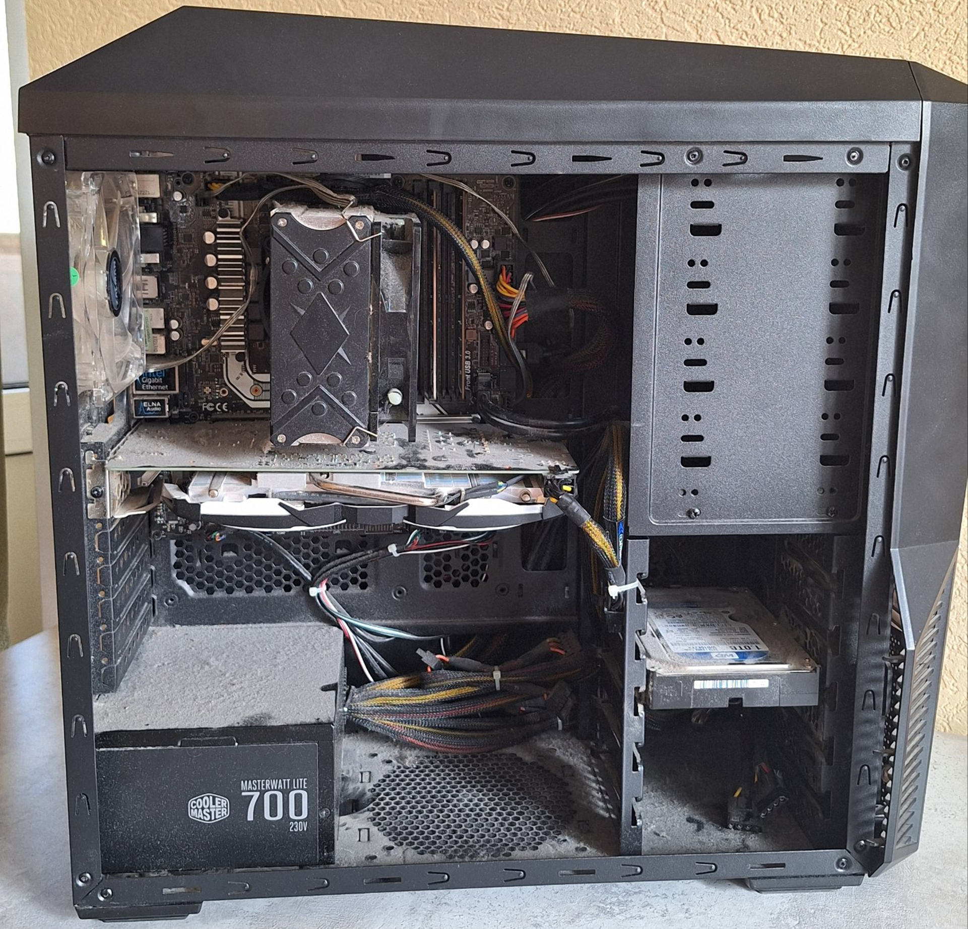 Ко мне в руки попал ПК, который не открывали, не обслуживали и даже не протирали от пыли с самой покупки – а куплен он был около 10 лет назад. Термопаста превратилась в камень, радиаторы были забиты пылью так, что их можно было погладить, как котенка. Я полностью его очистил: разобрал до винтика, убрал многолетние залежи пыли, поменял все термоинтерфейсы и даже протер окисления на контактах оперативной памяти. Теперь он выглядит как новый.