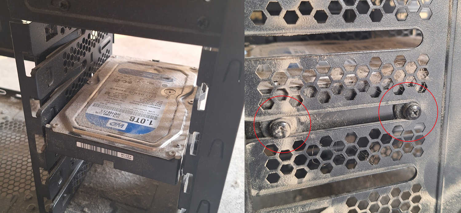 Снимаем SATA-накопители. Жесткие диски (HDD) обычно крепятся на болты сбоку, SSD – снизу. Открутите их и извлеките из корпуса.