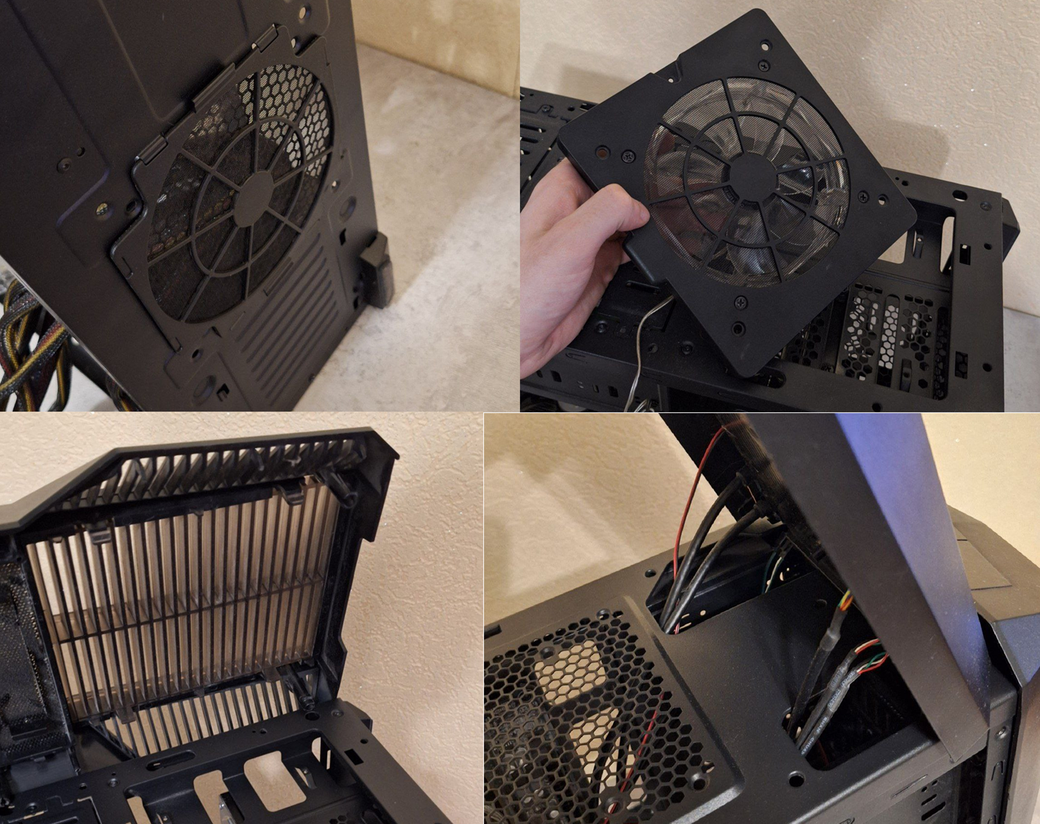 Аккуратно снимите верхнюю часть – если будете делать это резко или с усилием, есть риск повредить кабель или коннектор от вентилятора БП.