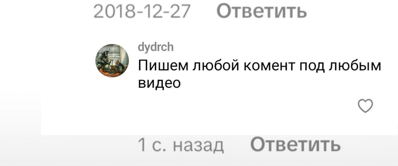 Дальше вам понадобится «ответ» на ваш будущий комментарий из прошлого. Да, именно в таком порядке – сначала готовим ответ, а потом «прошлое» сообщение. Например, напишите «я вернулся» или «предсказание сбылось!». Для этого просто зайдите под любое видео в TikTok, оставьте этот комментарий и сделайте его скриншот.