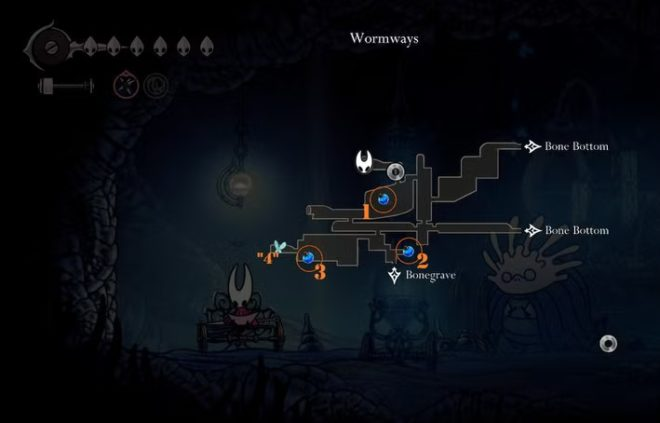Последний бутон находится в левом нижнем секторе карты. Из второго источника направляйтесь влево, преодолевая ловушки и шипы. Упретесь в стену – разрушьте ее, чтобы открыть скрытый проход. Пройдите по платформам и спуститесь по левой стене вниз: в нише вас ждет финальный плазмиум в Hollow Knight Silksong.