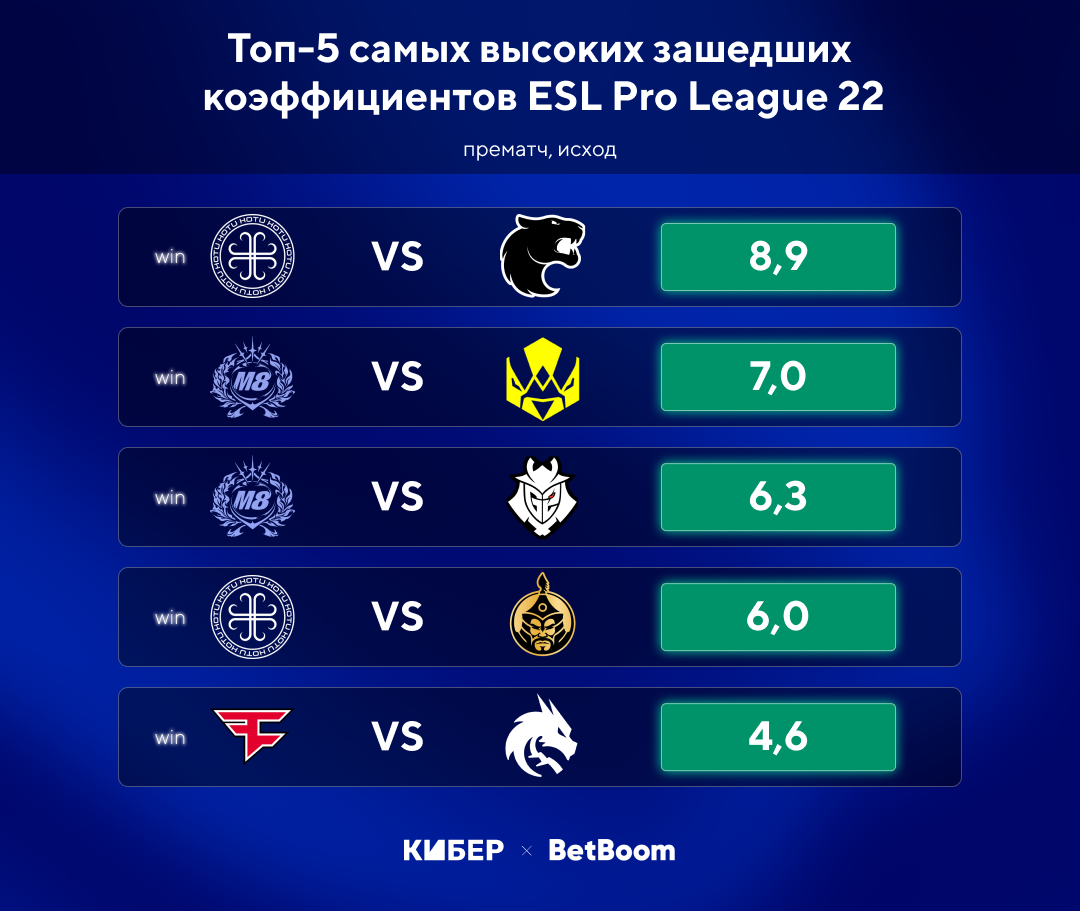 Шикарные аутсайдеры и огромные кэфы. Итоги ESL Pro League 22