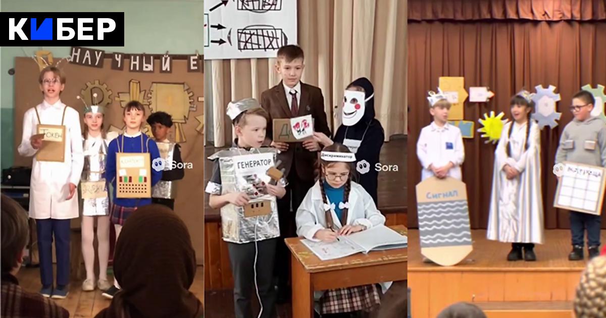 Сами видео выглядят настолько правдоподобно, что сначала не верится в их нереальность. Все совпадает с нашими видео из папки «Школа 2003»: низкое качество картинки, самодельные костюмы, серьезные детские лица.
