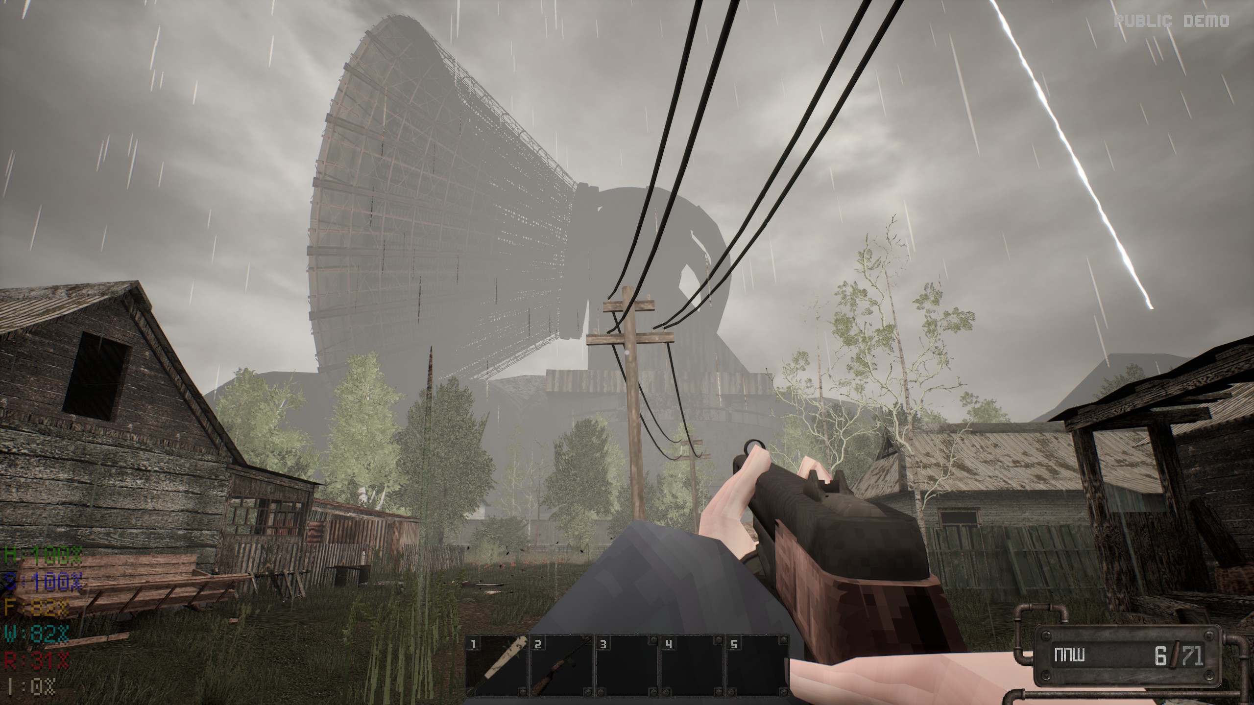 Следующий этап геймплея — вылазки из вашей норы за припасами, мебелью для убежища (модные шкафы можно либо скрафтить из хлама, либо принести с собой в сумке), патронами и артефактами, которые дают заметный бонус к характеристикам. Мир за пределами вашего убежища процедурно-генерируемый, поэтому каждое новое приключение будет чем-то отличаться от предыдущего. Можно наткнуться на заброшенный городок, а в следующий раз — на огромный советский радиотелескоп.