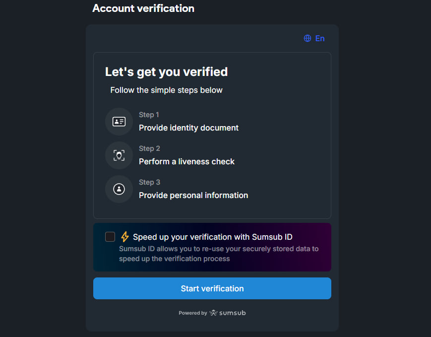 Затем в разделе «My Profile» переходим к блоку «Verify My Account», где проходим KYC-верификацию. Вам нужно будет загрузить фото своего паспорта или другого документа, подтверждающего личность, отсканировать лицо, а после дождаться окончания проверки.