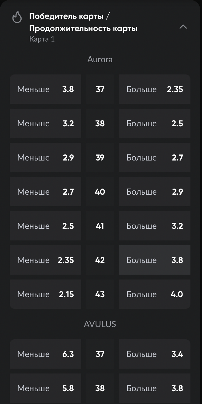 Пример ставки на «Победитель карты + продолжительность карты»