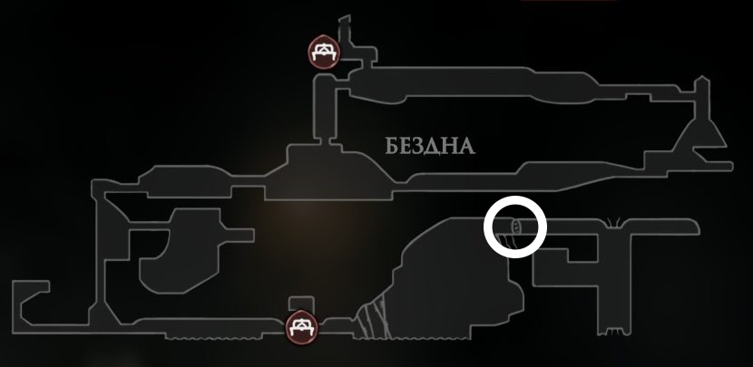 Единственный Ткачедом, обязательный по сюжету. Проходите вглубь Бездны, чтобы открыть дверь. Внутри можно найти Дальногляд (Farseer) – предмет, показывающий процент завершения игры, и способность Окрыляющий Шелк (Winged Silk).