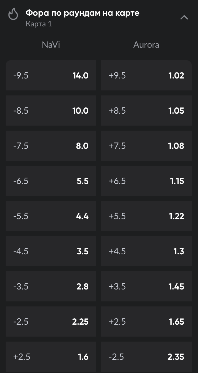 Ставка на фору по раундам на карте – хороший вариант, если есть ярковыраженные фаворит и аутсайдер, а коэффициент на победу слишком низкий.