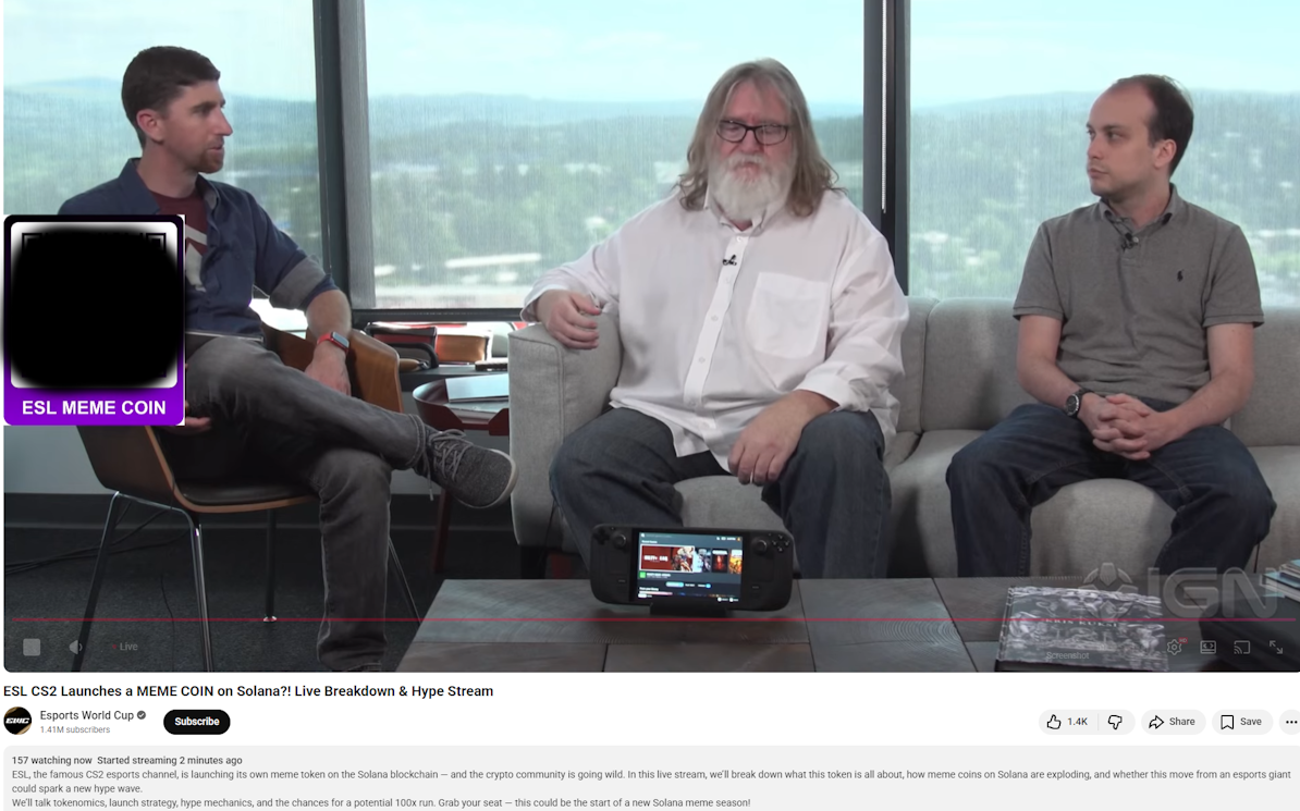По их мнению, за взломом YouTube-каналов стояла та же группа людей, что и в случае со сбоем. На всех украденных аккаунтах шел стрим с «анонсом» криптовалюты Meme Coin. Злоумышленники взяли старое видео, в котором Гейб Ньюэлл рекламировал Steam Deck, и добавили к записи вредоносный QR-код, призванный заманить пользователей на фишинговую страницу для кражи данных.