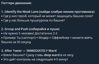 Итак, я попросил бота улучшить мое понимание макроигры, дать советы по движениям в первые 20 минут и разобрать геймплей на Бэйне, Веномансере и Рубике.
