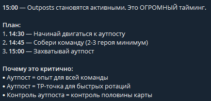 Эти постройки не дают опыт уже как 2,5 года, а откуда взялась отметка 15-й минуты – непонятно. Самая первая версия аванпоста становилась доступной для захвата после 10:00, а чтобы открыть его, уже 5 лет как нужно снести Т2 вышку.