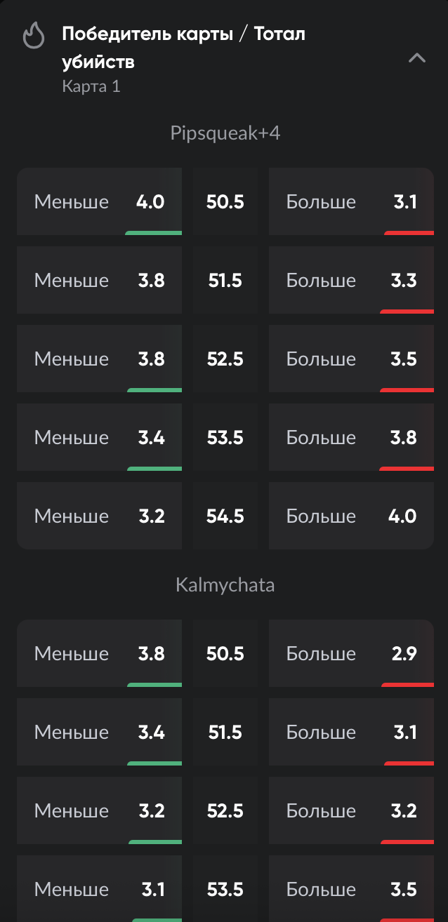 Комбинированное пари, которое предлагает угадать исход карты и общее количество убийств. Встречается в ЛоЛе и Dota 2.