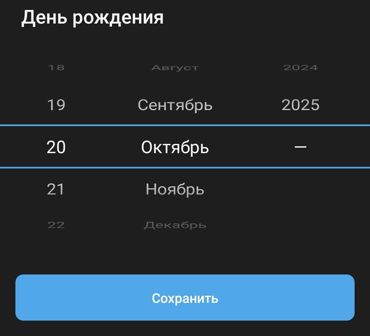 В открывшемся окне редактирования профиля найдите и нажмите на поле «День рождения».