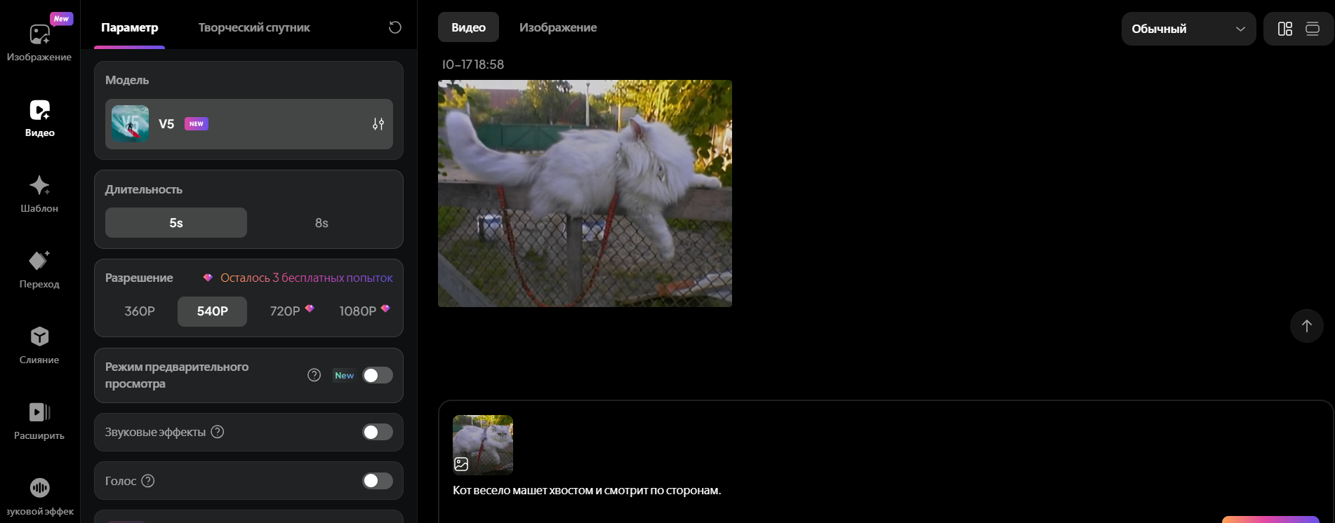 - Лимиты: до 4 видео после регистрации. Далее ежедневно выдается 60 кредитов, чего хватит на создание до 3 роликов.
