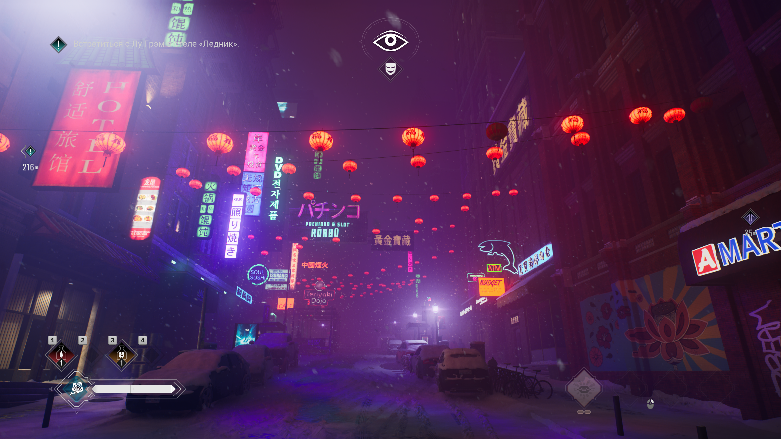 Визуально игра выглядит добротно, но не более. Предновогодний Сиэтл с гирляндами и снегом держит атмосферу. Текстуры местами мыльные, но общая картинка приятная. Лицевые анимации приличные, нарезать на мемы не получится. А вот музыка действительно хороша и создает правильное настроение вампирского города.